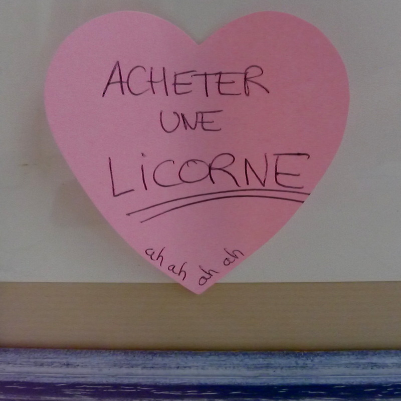 Je suis une grande consommatrice de Post-It. J’en ai des tiroirs pleins, de toutes les formes et de toutes les couleurs. Je les utilise pour déplacer proprement dans mon agenda les tâches qui n’ont pas de date d’exécution précise, au lieu de les recopier d’une semaine sur l’autre jusqu’à la fin des temps. Je les colle sur l’écran du Mac de Chouchou pour lui indiquer le montant des virements qu’il doit me faire, ou sur la porte de sa penderie pour lui demander de ranger ses classeurs d’archive avant que je finisse le crâne fracassé par leur chute. J’en ai mis un avec le numéro de fixe de l’appart’ de Bruxelles sur le mur au-dessus de l’appareil concerné – parce que quand on me demande le numéro en question, je suis infoutue de le réciter de mémoire. Enfin, à Monpatelin, j’y note les choses auxquelles je dois penser lors de mon séjour suivant. La fois dernière, j’avais donc laissé dans la salle de bain un coeur rose marqué: « Eau micellaire, dissolvant » au-dessus de deux flacons quasiment vides. Et sur la grande aquarelle qui surplombe mon buffet, un deuxième coeur marqué « Acheter aspirateur de table, BORDEL » parce que ça faisait six mois que j’oubliais ou que je repoussais.