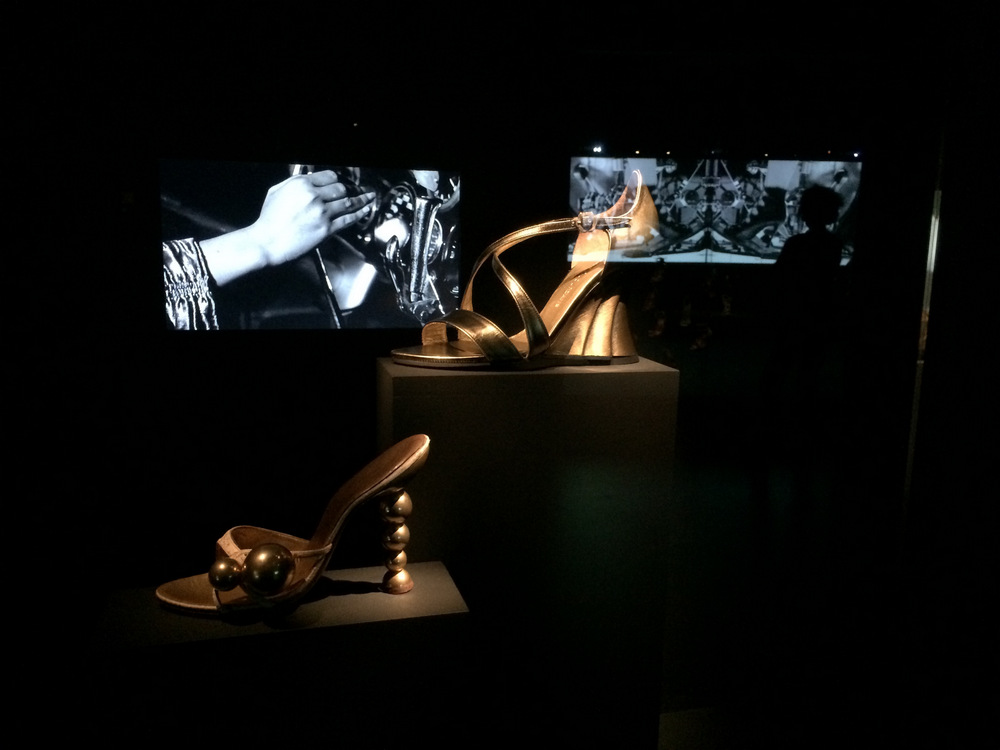 Après avoir reporté de semaine en semaine depuis le début de l’année, samedi, nous avons enfin réussi à nous rendre à Anvers pour voir l’exposition « Foot Print – Sur les pas des chaussures dans la mode » qui prendra fin le dimanche 14. Le MoMu, ou Mode Museum, se situe pas trop loin de la grande artère commerçante du Meir (compter une petite demi-heure à pied depuis la gare centrale, ou prendre le tram 12 jusqu’à l’arrêt Groenplaats). C’est un beau bâtiment moderne avec de larges marches en bois et des volumes bien travaillés, flanqué d’une boutique où l’on trouve plein d’ouvrages passionnants. Quant à l’expo elle-même, elle présente 500 paires de chaussures de créateurs du monde entier, et il y en a vraiment pour tous les goûts, du presque portable au plus expérimental, du quasi-sobre au très très délirant. Des vitrines souvent agrémentées de vidéos les regroupent par thème ou par créateur. Comme d’habitude, j’ai regretté que tout ce qui n’est pas les pièces proprement dites soit complètement plongé dans le noir, mais Chouchou m’a fait remarquer que c’était peut-être pour diminuer les reflets sur le verre. Dommage: j’aurais bien aimé dessiner, mais je n’avais pas apporté de lampe. Néanmoins l’expo me paraît très intéressante pour les fétichistes de la chaussure dans mon genre.