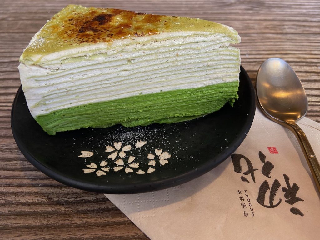 Mais le clou du repas, bien entendu, c’était le dessert. En la matière, la carte du Shodai Matcha est hyper impressionnante. Je ne suis pas un bec sucré et c’est rare que j’aie autant de mal à me décider – la plupart du temps, s’il y a UN truc qui me tente, c’est déjà beaucoup. Cependant, j’étais curieuse de goûter le millecrêpes, notamment dans sa version à la crème de marrons. Contrairement à ce que son nom indique et à ce que son profil laisse croire, il ne s’agit pas d’un empilement de crêpes mais d’une mousse juste surmontée d’une couche de caramel craquant. La texture est à la fois consistante est légère, le goût subtil mais bien présent, la dose de sucre idéale pour moi. Il se peut que j’aie émis des gémissements pas très dignes en m’efforçant de ne pas tout engloutir d’un coup.