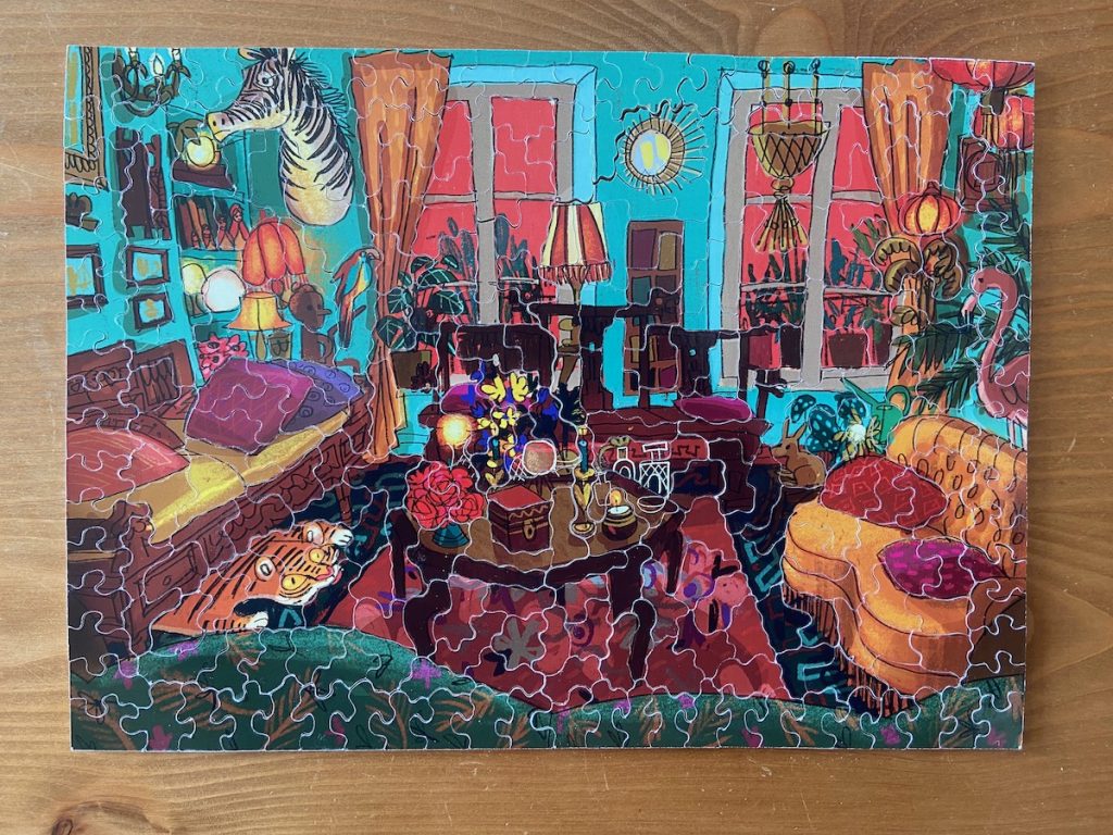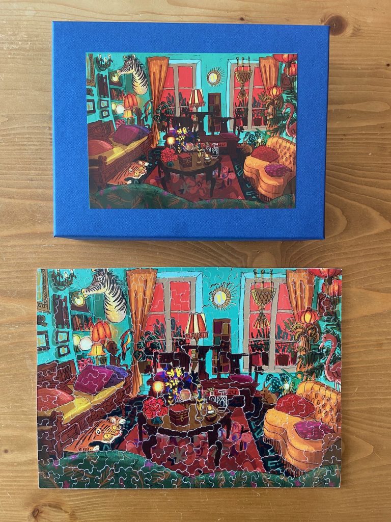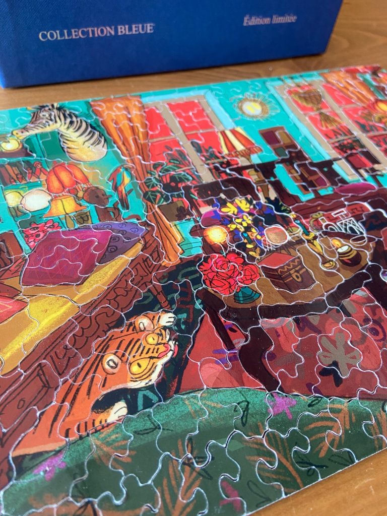 Au final, je suis contente d’avoir réussi à le terminer. L’illustration est très chouette, et c’était une expérience, disons, pas inintéressante. Mais il est clair que malgré leur qualité évidente, les puzzles Michèle Wilson ne sont pas du tout faits pour moi. D’ailleurs, si une lectrice dotée d’une meilleure motricité fine est intéressée pour racheter l’édition limitée de Pénélope Bagieu, désormais sold out sur le site de la marque, qu’elle n’hésite pas à me contacter par mail.