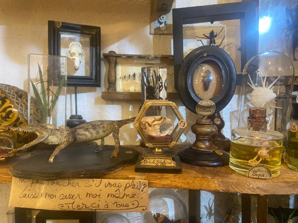L’après-midi commence par un carnage shoppingesque bien au-delà de ce que j’avais prévu. Je m’échauffe avec quelques menues bricoles chez Sostrene Grene. J’enchaîne avec deux masques steampunk et un collier gorgone à La Taverne de Platon (où je me retiens de partir également avec une canne boussole/longue-vue absolument sublime). Je continue avec un parfum d’ambiance Fragonard (mais c’est la faute de l’hôtel: ils en ont mis dans ma chambre, et l’odeur est tout simplement divine). Je réussis enfin à choper une demi-douzaine de madeleines à l’orange chez Christophe. Je rafle une bédé non-prévue au programme à la Bédérie (mais c’est la faute d’Isa qui s’est lâchée et m’a donné le mauvais exemple).