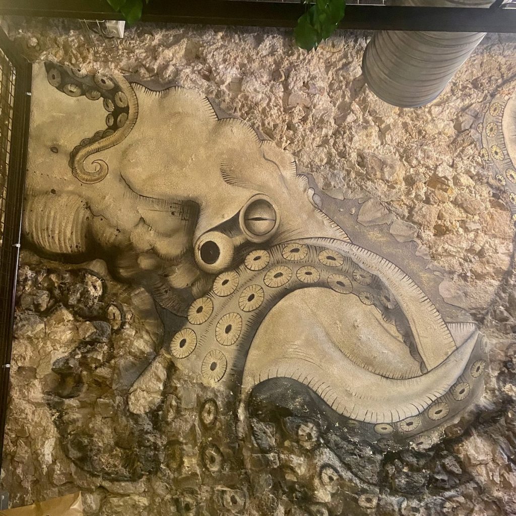 Nous faisons un repas parfait au Quatre: déco poulpesque jusque dans les toilettes; plats un peu recherchés, savoureux et bien dosés en quantité; service fort sympathique et ambiance musicale du début des 90’s. Je ne manquerai pas de rajouter l’adresse sur ma Google Map d’Aix.