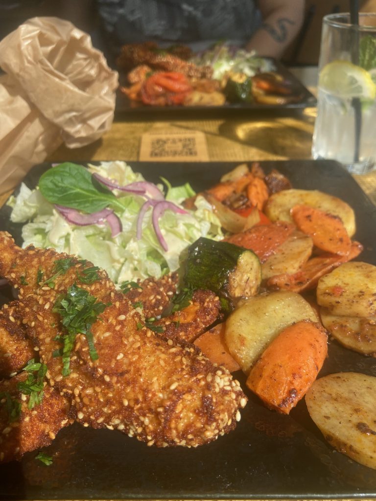 Mardi matin, direction Aix-en-Provence en TER pour un « week-end en pleine semaine » avec mon amie Isa. C’est devenu une tradition annuelle de nous retrouver dans cette ville plus ou moins à mi-chemin entre chez elle et chez moi. Cette fois, elle aussi a réservé une chambre à la Maison du Collectionneur: la Madeleine Castaing pour elle, la Ponti pour moi. On se rejoint sur place vers 13h, et après avoir déposé nos bagages, on va manger dans le petit syrien sympa juste à côté. Poulet au sésame et légumes rôtis pour tout le monde!