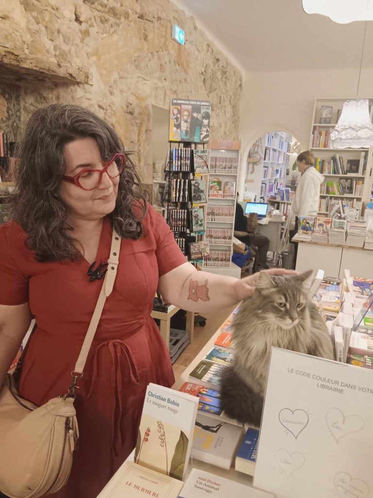 Sur le chemin du retour à l’hôtel, deux pièges potentiels: le Chat-Pitre, où je me contente de caresser les pensionnaires félins de plus en plus nombreux (notamment un superbe mâle à long poil gris très doux, baptisé Sherlock) et la papeterie Michel, où j’hallucine devant le prix d’un taille-crayon à l’ancienne Caran d’Ache (175€, pour les curieuses)(ça fait un choc, hein?).