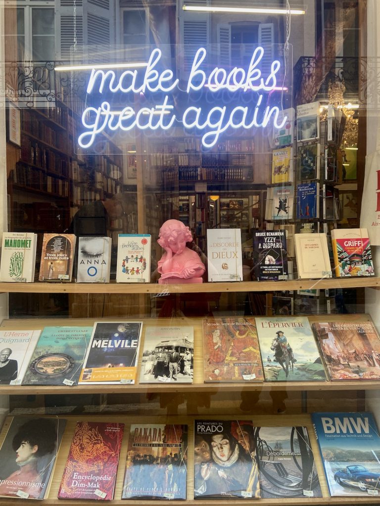 Une petite promenade digestive? Pour une fois que je me traîne jusqu’à la bibliothèque Méjanes afin de prendre des photos devant les livres géants devant l’entrée, elle est en travaux et inaccessible. Grmbl. On voudrait nous obliger à faire du shopping qu’on ne s’y prendrait pas autrement. Mais nous serons fortes (essentiellement parce que fauchées et déjà trop chargées pour notre voyage de retour à ce stade).