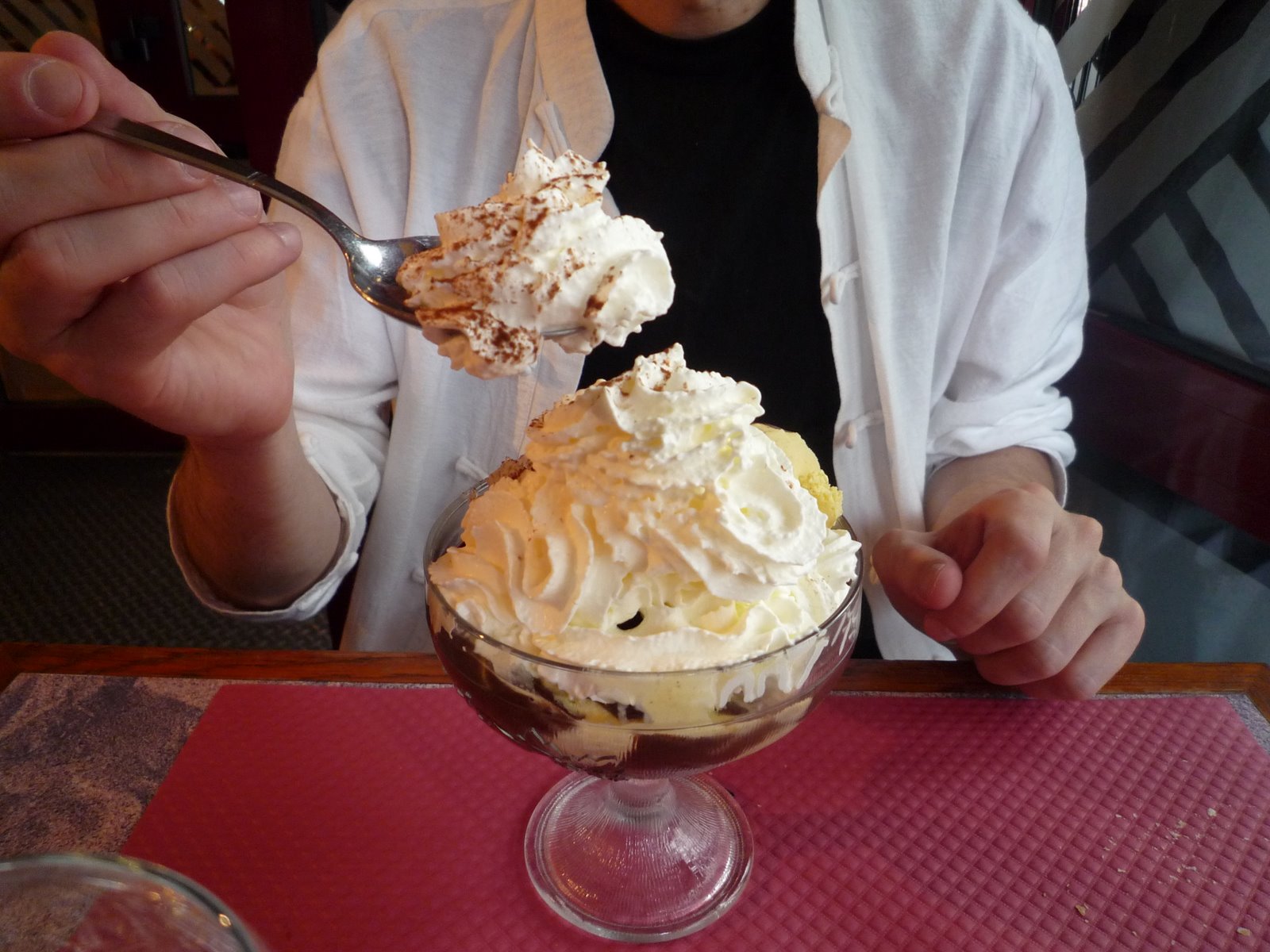 Je cours jusque chez Editeur Préféré, où j’arrive probablement en retard (de combien, je ne saurais pas le dire: je ne porte jamais de montre). Bones est tout seul à m’attendre dans ses bureaux déserts; moi qui pensais que ses employés étaient enchaînés devant leur ordi 24h/24! Bien que le quartier soit assez pauvre en restos et que beaucoup de commerces soient fermés en ce mois d’août, nous trouvons une table dans un bistrot sympa. Gratin de macaronis au fromage et dame blanche pour lui, suprême de volaille/purée maison et tarte Tatin pour moi. Nous parlons finalement assez peu de boulot, mais beaucoup de nos santés respectives, de nos expériences d’aide à autrui et… des « Maçons du Coeur », une émission de télé-réalité paraît-il particulièrement lacrymale. Comme toujours, c’est un moment agréable: Bones et moi avons en commun d’être totalement open et de parler volontiers de cul, ce qui pimente toujours un peu la conversation 🙂 En sortant du resto, je le raccompagne au siège social de sa boîte, où je tombe sur la très adorable Barbara, DAF de son métier. Elle est proche de JC elle aussi et nous discutons de lui assez longuement. Quand quelqu’un finit par mentionner qu’il est déjà presque 16h, je fais mes adieux en hâte et file expédier le reste de mes courses.