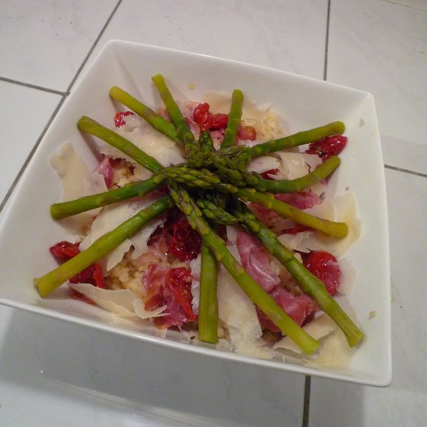 – 10 à 12 mini-asperges vertes cuites à la vapeur et laissées refroidir.