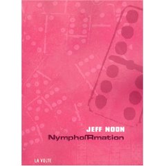 Or, pendant que je me promène dans l’espace librairie samedi après-midi, un livre à la couverture rose attire mon attention. Il s’agit de NymphoRmation, un roman justement signé Jeff Noon. Petit coup d’oeil à la quatrième de couv: sa biographie décrit l’auteur comme « un genre de Lewis Carroll moderne sous substances hallucinogènes ». Mmmh, ça pourrait me plaire. Et Jeff Noon est justement en train de dédicacer. Je m’étais promis de ne pas acheter de bouquins supplémentaires ce week-end, mais j’ai déjà craqué pour le dernier Pierre Dubois, alors au point où j’en suis…