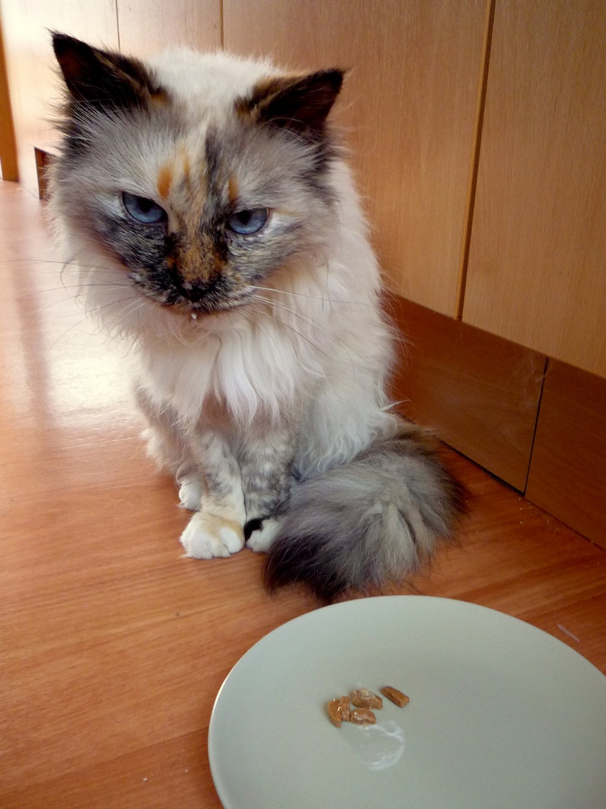 Si on tente de ruser et de planquer le cachet entier dans du fromage blanc, ce chat lape tout ledit fromage blanc et nous restitue une assiette propre comme au sortir du lave-vaisselle, avec un médicament intact au milieu.