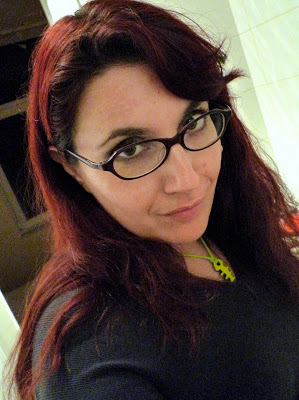 Photo prise dans notre salle de bain jeudi soir, en rentrant du Tapas Mas où nous venions de fêter les 39 ans de Wééééé (l’amie d’enfance de Chouchou.) Je voulais immortaliser mon maquillage, et finalement on ne le voit presque pas – oui, je sais: les lunettes! Mais sans elles, je ne me reconnais pas. Je trouve qu’il manque quelque chose à mon visage. Donc, je vous présenterai mon mariage de fards à paupières dans les prochains « tests de la semaine ». J’attire également votre attention sur mon petit pendentif Diplodocus vert acide que j’adore et qui relève très bien, à lui tout seul, une tenue un peu fade.