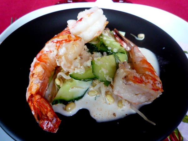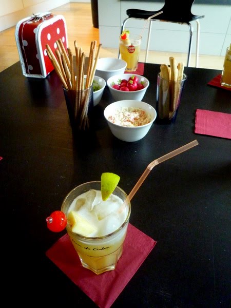 JB et Hélène, que nous ne connaissions pas mais qui étaient invités en même temps que nous chez Miss Sunalee et diane cairn, sont venus nous chercher avec nos deux guitares et manettes de Wii, mon essoreuse à salades pleine de madeleines et ma valise de maquillage pour nous conduire jusqu’à Stokkel. J’avoue que même fan des transports en commun, je ne dédaigne pas une petite balade en BMW, surtout par un jour pluvieux et en talons de 10! A l’apéro, j’ai eu droit au Mai-Tai que je réclamais à cor et à cris depuis, euh, depuis le dernier que diane m’avait préparé. Pour le déjeuner, nos hôtes avaient confectionné un repas indien avec crevettes sauce coco en entrée et curry d’agneau tendre à se damner, servi avec moult accompagnements: dal de lentilles, raïta, chutney d’ananas, tomates à la coriandre fraîche, petit mélange de légumes… Le dessert était une panacotta au gingembre et au citron dont Miss Sunalee nous a prévenus qu’elle allait se stocker directement dans nos fesses. Je me suis dit que chez moi, elle allait devoir batailler ferme pour se faire de la place…