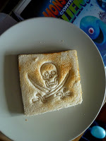 – un « toast stamper » pirate, qui permet d’imprimer sur les tartines grillées des têtes de mort des deux sabres croisés dessous