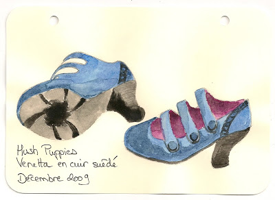 A la demande générale de Zorro, voici mes derniers portraits de chaussures à l’aquarelle: