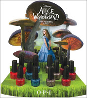 – La mini-collection Alice in Wonderland d’OPI. En attendant la sortie du film de Tim Burton, je VEUX le « Absolutely Alice », un bleu pailleté divin, théoriquement en vente chez Sephora.