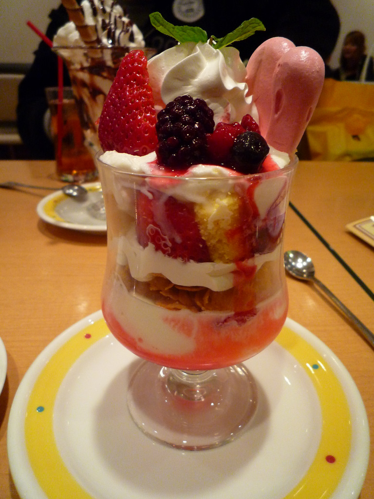 – Ses desserts infâmes. Adaptés de recettes occidentales dont les Japonais conservent l’apparence mais suppriment presque tout le sucre et le beurre. Il a l’air bon, ce « strawberry shortcake parfait », hein? Ben, il ne l’est pas. Et en plus, il y a des corn flakes et de la Jell-O rouge planqués dedans.– Ses lieux publics toujours fumeurs, sans même parfois qu’un espace soit réservé aux non-adeptes de la clope désireux de manger un tonkatsu ou de boire un Coca dans une atmosphère respirable.