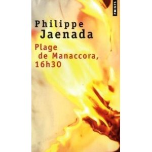 Jusqu’à « Plage de Manaccora, 16h30« . Pourquoi celui-là et pas un de ceux qui l’ont précédé, ou qui le suivront? Parce que Caro de Pensées de Ronde en avait dit beaucoup de bien, et que j’ai pas mal de coups de coeurs littéraires en commun avec elle depuis deux ou trois ans. J’ai bien fait de l’écouter: j’ai adoré ce roman court que j’ai lu quasiment d’une traite. De quoi parle-t-il? Pendant leurs vacances dans le sud de l’Italie, un couple et son jeune fils sont confrontés à un monstrueux incendie de forêt qui les rabat vers la mer. Et fidèle à l’adage qui veut que l’on revoie toute sa vie en accéléré quand on est sur le point de mourir, le narrateur se remémore des scènes marquantes de son existence tandis qu’il s’efforce d’entraîner sa famille en sécurité. Outre la force de l’histoire, j’ai beaucoup apprécié l’évolution du style de l’auteur. Philippe Jaenada a su conserver ce qui faisait sa spécificité d’écrivain tout en se débarrassant d’une certaine arrogance plumitive. Désormais, il sait parfaitement doser ses digressions poupées-russes pour amuser ou interpeler sans perdre son lecteur en route. Et au lieu de chercher à éblouir ce dernier, il s’attache juste à être vrai, ce qui le rend souvent émouvant. « Plage de Manaccora, 16h30 » est l’oeuvre d’un auteur enfin parvenu à maturité que je continuerai à suivre avec intérêt.