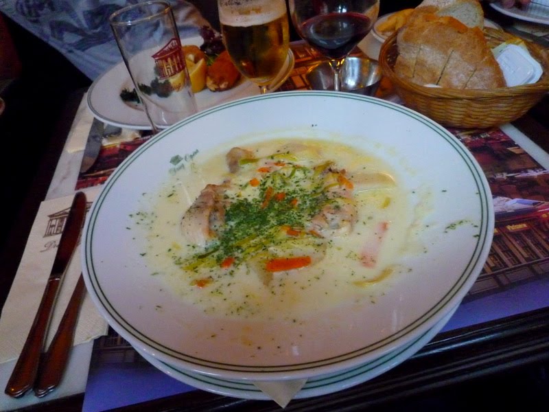 Si j’avais souvent goûté au Drug Opera, je n’y avais encore jamais dîné. J’ai opté pour un grand classique de la cuisine belge: le waterzooi, qui a dû affronter la rude comparaison avec celui de la maman de Chouchou – et qui s’en est ma foi plutôt bien tiré. Le Bordeaux rouge qu’on m’a servi au verre n’était pas mal non plus, même si le serveur peu souriant n’a pas daigné me le présenter par son petit nom. Quant à la gaufre aux fruits et à la chantilly avec laquelle j’ai achevé mon pauvre foie, ce n’était pas la meilleure que j’aie jamais mangé, mais elle se défendait très correctement contrairement à l’équipe de foot française en ce moment, sa race.