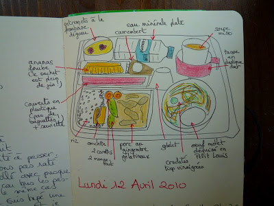Parce qu’il fallait bien passer le temps dans l’avion, j’ai dessiné le plateau-repas, qui était assez mauvais…