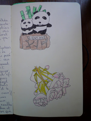 Les animaux, ça bouge trop! Au zoo de Ueno, je me suis contentée de dessiner une statue et des fleurs de cerisier.
