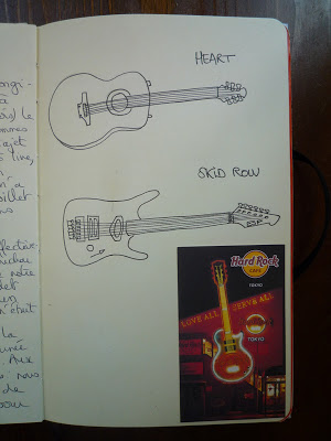 Deux guitares croquées vite fait au Hard Rock Café de Roppongi en attendant notre commande. Pas eu le temps de les mettre en couleur.