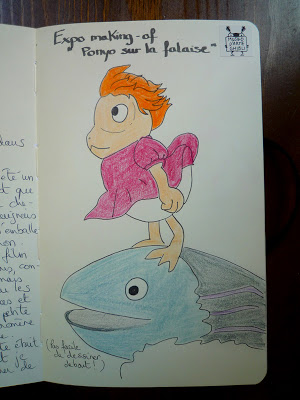 Le gardien chargé de vérifier que personne ne prenait de photos dans la salle de l’expo temporaire consacrée à « Ponyo sur la falaise », au musée Ghibli, est resté imperturbable en me voyant sortir mon carnet et mes crayons pour dessiner la statue qui trônait en plein milieu de la pièce. Mais j’avoue que je ne me sentais pas très à l’aise.