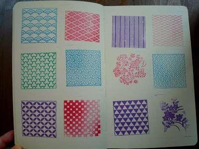 Le Tokyo National Museum mettait à disposition des visiteurs des tampons permettant de créer ses propres cartes postales illustrées, ainsi qu’un fascicule expliquant la signification de chacun de ces motifs (utilisés à la base pour décorer les kimono).
