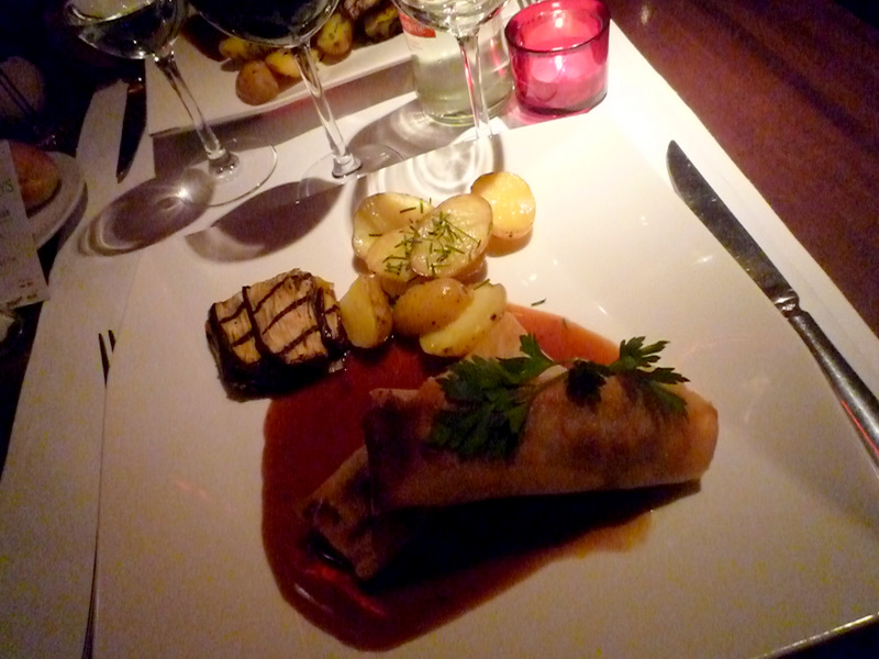 Pour fêter à la fois mon retour au bercail après un mois d’absence et les 4 ans de notre couple, Chouchou a voulu m’inviter dans un bon restaurant en profitant de l’offre RestoDays valable du 8 au 18 octobre cette année. Le principe: un menu gastronomique à choix plus limité que la carte habituelle, mais au prix unique de 21€ le midi et 28€ le soir, dans 200 établissements bruxellois. L’occasion de tester des endroits où l’on n’a pas trop les moyens de manger d’habitude. Hélas, comme la chose s’est décidée au dernier moment, il ne restait guère de possibilités. J’ai refusé Le Maharadjah dont la formule buffet me paraissait peu romantique, et nous avons donc atterri au Bla-Bla & Gallery, dont nous aimons beaucoup le brunch mais où nous n’avions encore jamais dîné.Pour ne pas trop faire ma grincheuse, je tiens quand même à ajouter que la salle du Bla-Bla & Gallery est très belle le soir avec des éclairages tamisés, que le service m’a paru assez correct (bien qu’on ait oublié de nous fournir du pain avec les entrées), et que le petit orchestre piano-violoncelle-batterie apportait une touche musicale agréable – même s’il a dû rivaliser avec le brouhaha d’une tablée de quinze personnes. Mais sur ce coup-là, franchement, leur chef ne s’est pas foulé. Il ne m’a pas donné envie de tester sa carte habituelle. Je retournerai sans doute au Bla-Bla & Gallery, mais uniquement pour y bruncher.