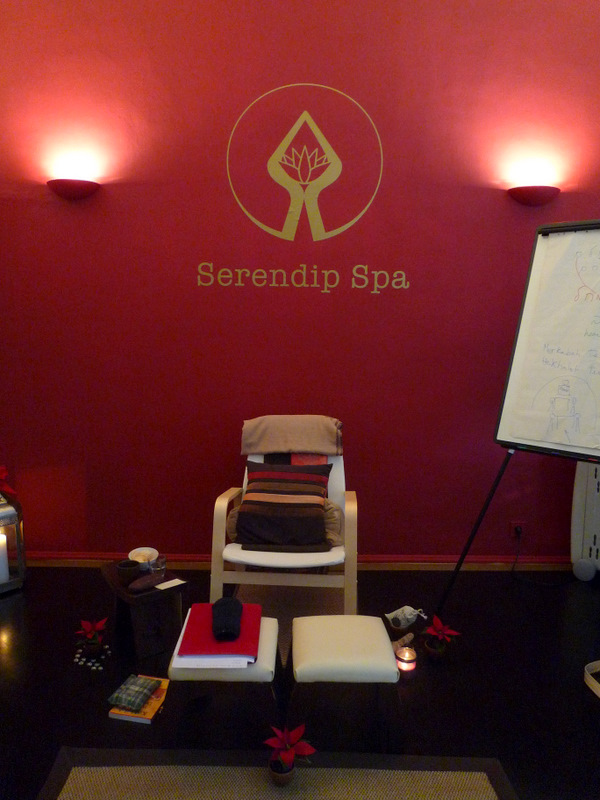 Vendredi, samedi et dimanche, je me suis donc enfermée une grande partie de la journée avec 17 autres personnes dans la salle de yoga du Serendip Spa. Claudia, la maîtresse des lieux, avait concocté une de ces décorations élégantes et festives dont elle a le secret. Des théières pleines de tisane maison apaisante ou détoxifiante nous attendaient en fumant sur le comptoir, près d’un panier de mandarines et de coupes débordant de petites douceurs. Malgré le froid, j’avais mis une jolie jupe et des babies pour venir à pied, et j’avais aimé ce sentiment d’aller faire quelque chose quelque part pendant toute la journée, un peu comme une salariée qui se rendrait à son bureau. Je ne suis pas sûre que ça me plairait si je devais le faire tous les jours, mais là, ça me changeait un peu.