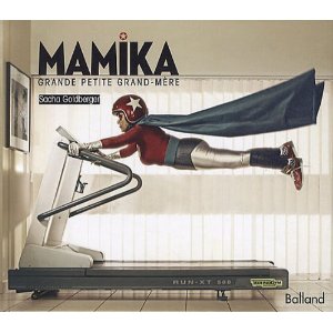Pour sortir de la dépression sa grand-mère âgée de 90 ans, le photographe Sacha Golberger décide d’en faire le modèle d’une série de photos à l’humour complètement décalé. On y voit Mamika (« petite grand-mère » dans son hongrois natal) fumer des Knacki et des bananes, faire du vélo d’appartement sur la place de l’Etoile, planter un clou avec une éponge, improviser des jumelles avec deux rouleaux de PQ, boire son thé dans une bouillotte, transformer son frigo en garde-robe, descendre ses escaliers à ski, se laisser draguer par un poulet, suspendre sa salade avec des pinces à linge pour l’égoutter ou faire du stop pour Gotham City déguisée en super héroïne. C’est irrésistible de drôlerie et de tendresse. Un ouvrage à mettre entre les mains des petits comme des grands.