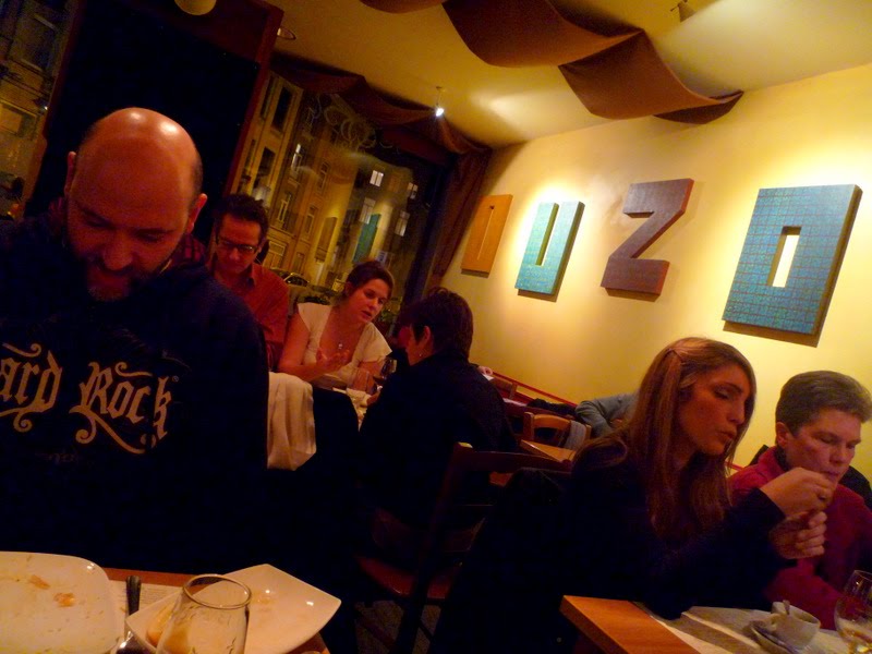 Ca faisait déjà un moment que Chouchou et moi voulions tester ce resto grec recommandé par des amies et situé juste au bout de notre ancienne rue. Vendredi soir après notre séance de cinéma, nous avons donc profité de la température clémente pour remonter la Chaussée d’Ixelles à pied jusqu’à l’Ouzerie.