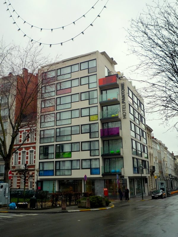 Après un très chouette dîner chez nos amies M², il était déjà minuit et demi lorsque nous sommes arrivés hier soir à l’Hôtel Pantone où nous devions passer la nuit en amoureux. Parmi les couleurs disponibles, nous avions opté pour une chambre orange et avons donc vu des bulles bleues, puis vertes, puis mauves, puis jaunes défiler par la paroi vitrée de l’ascenseur avant de nous arrêter au 5ème (plus haut, il y a encore un étage rouge et un marron).