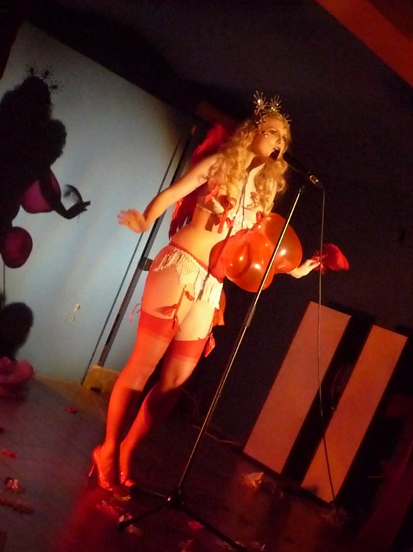 C’est au tour de Minnie Valentine. Ravissante en bikini rouge et blanc couvert de ballons en forme de coeur, elle s’approche du micro pour interpréter « It’s oh so quiet », tout en ponctuant les couplets de clins d’oeil coquins et en faisant éclater ses ballons l’un après l’autre avec une grande plume rouge. Un numéro charmant.