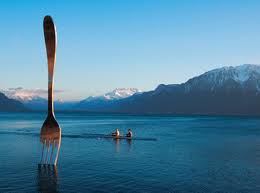 Cette fourchette géante est réellement plantée dans le lac Léman, en Suisse. Nous irons l’admirer le dernier week-end de juin. Nous en profiterons pour rencontrer Lady Pops et Funambuline, faire du trafic de fournitures de scrap et de vernis à ongles, acheter du chocolat et du fromage, goûter le meilleur burger de Lausanne et, si possible, loguer une ou deux géocaches helvètes. Les billets d’avion sont déjà pris; il ne reste plus qu’à croiser les doigts pour que Chouchou obtienne bien les deux jours de congé dont il a besoin.