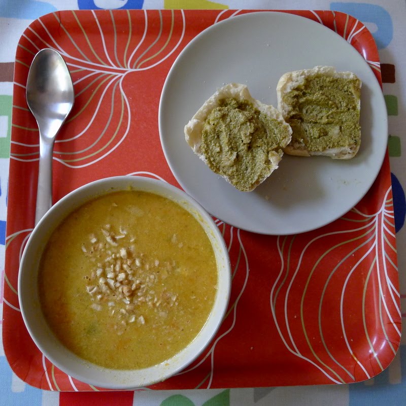 Servi ici avec des tartines de tapenade verte, et dégusté vendredi soir devant « The Wildebeest Implementation », encore un épisode hilarant de « The Big Bang Theory ». Les restes ont été mangés le lendemain midi avec une petite assiette de tomattes-mozza.