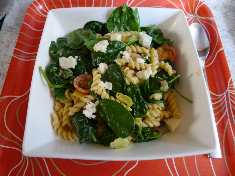 – Egoutter les pâtes. Les mélanger à la préparation à base de poireaux. Ajouter les pousses d’épinards.