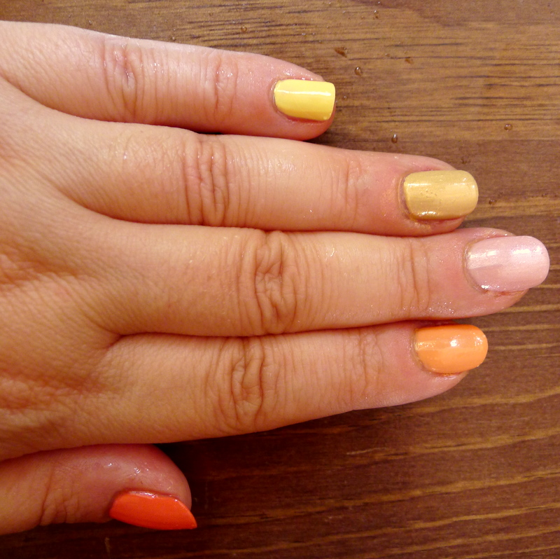 Même en négligeant de mettre du top coat et en refaisant une manucure tous les deux ou trois jours, je n’arrive pas à écluser mon retard de tests de vernis. (Après la PAL, la PAV?) Du coup, j’ai décidé d’en essayer cinq d’un coup hier: