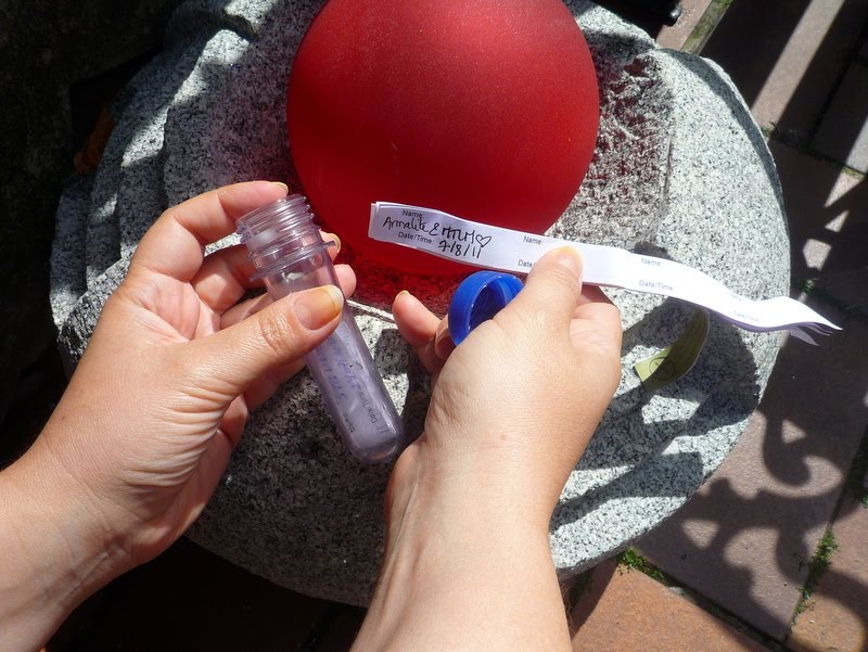 « De steen der Wijzen », cache dont la fiche exclusivement en flamoutchi m’a obligée à faire appel aux services de traducteur de Chouchou, nous amène devant une propriété privée. Nous avisons immédiatement une sorte de boule rouge qui pourrait correspondre à l’indice, mais… malgré l’absence de portail, j’ai des scrupules à entrer dans le « jardin » d’un particulier, surtout si nous nous trompons. Puis Chouchou me désigne le Travel Bug autocollant placé à l’arrière de la C3 garée juste à côté – le tout premier que nous rencontrons. Pas de doute, nous sommes chez des géocacheurs. Nous soulevons la boule: la cache est dessous. C’est un tube de plastique qui ne contient qu’un petit logbook, mais j’aime l’originalité du procédé.