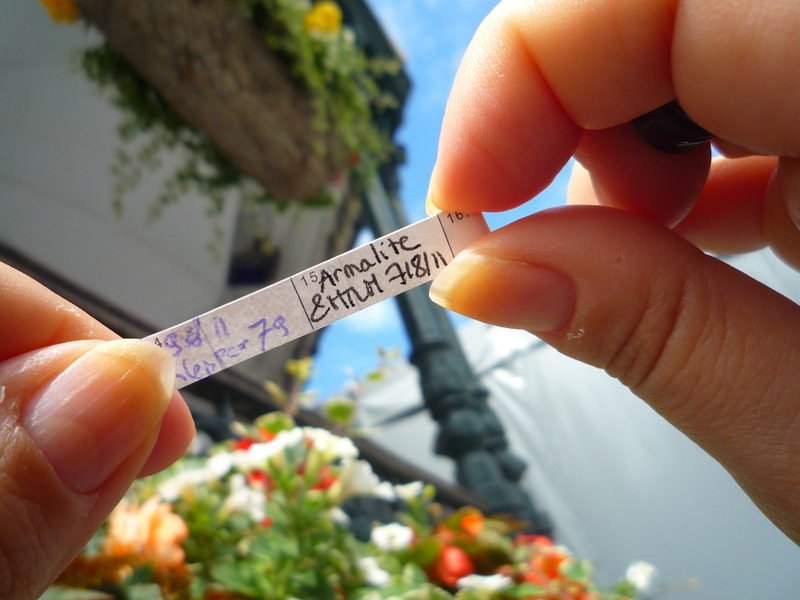 En sortant, nous nous dirigeons vers la grand-place locale pour faire la cache « Wapenplein ». L’indice nous dit qu’il faut la chercher près du tableau d’information; nous ne voyons qu’une structure qui pourrait correspondre à cette description, et une bande de djeûns squatte juste devant. pas facile d’être discrets! Nous tâtonnons un moment avant que j’aperçoive enfin un petit conteneur magnétique noir à vis – un classique des centre-villes. Je viens décrire nos noms et je suis en train de rembobiner péniblement la fine bande de papier qui tient lieu de logbook lorsqu’un monsieur à cheveux blancs et moustache très fournie nous apostrophe en flamoutchi. remarquant l’hésitation de Chouchou, il passe au français. C’est aussi un géocacheur, et il veut juste se loguer après nous. Il nous demande à combien de caches trouvées nous en sommes. Notre « 79 avec celle-là » pâlit en comparaison de son « un millier environ ». Glups. En même temps, si nous étions à la retraite, nous aussi, nous pourrions atteindre des scores impressionnants ^^