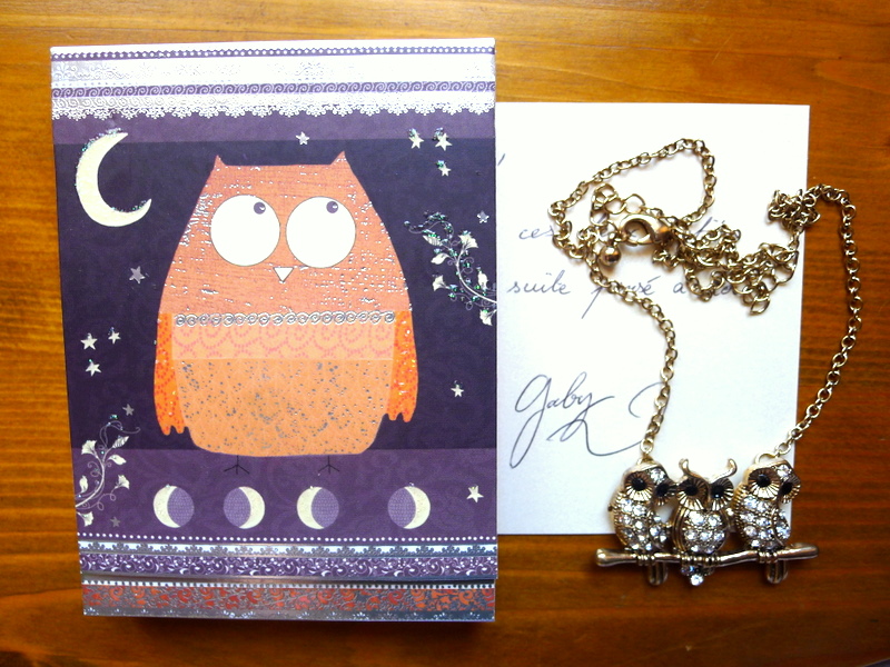 – Une enveloppe avec juste mon prénom dessus et un hibou autocollant. Elle contenait un mot de Gabrielle et ces deux petites choses: