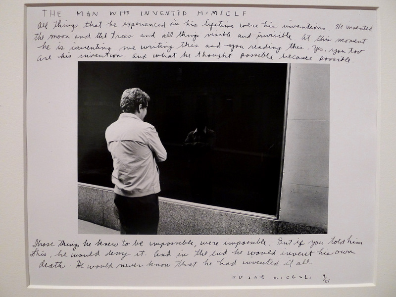 Hier matin, nous avons pris deux bus pour nous rendre sur Skeppsholmen dite « l’île aux musées ». Une première géocache sympa nous attendait non loin du Musée d’Art Moderne, planquée entre les racines d’un arbre; il fallait tirer sur une « lifeline » pour la faire sortir. Après une flopée de micro caches, c’était sympa de trouver un petit Tupperware avec quelques bricoles dedans. Puis nous avons visité le musée. La partie « expos temporaires » était actuellement vide. La collection permanente se divise en trois parties. La première, et celle qui m’a le plus intéressée, est consacrée à l’identité et à la façon dont elle a été redéfinie photographiquement dans la seconde moitié du XXème siècle. J’ai beaucoup aimé les portraits d’Irving Penn et surtout le travail de Duane Michals, qui écrit autour de ses photos des histoires inspirées par son sujet. « The man who invented himself », datant déjà de 1975, m’a particulièrement touchée: