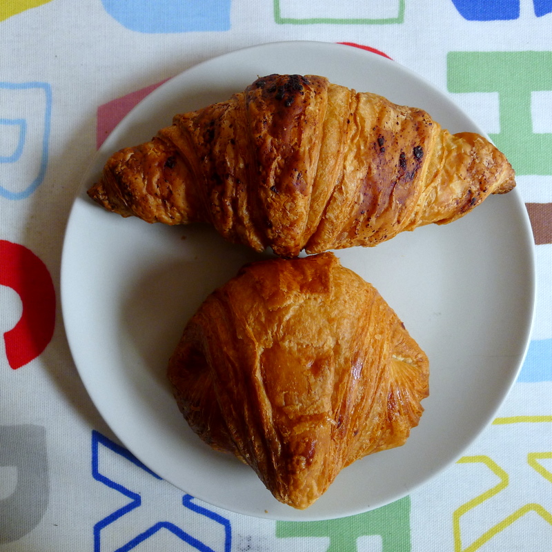 Mon intégrité bloguesque m’obligeant à vérifier ce que j’avance, ce matin, j’ai envoyé Chouchou me chercher un croissant et une couque au beurre, pour comparer.