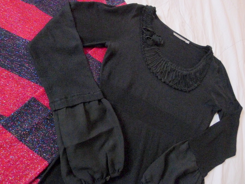 ps : j'aime beaucoup le top noir ! Et j'avais acheté l'an dernier un pull chez Caroll qui ressemble beaucoup à ton beige à sequins et je confirme, il est très fragile. Par contre, il a une coupe légèrement cintrée très très sympa !
