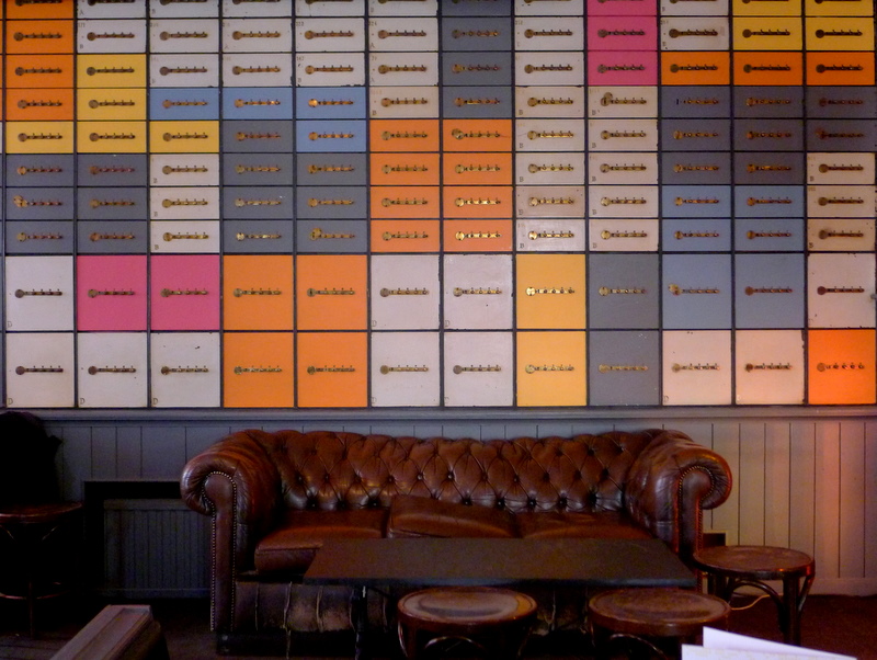 Ca faisait bien trop longtemps que Chouchou et moi n’avions pas testé une nouvelle adresse où bruncher le dimanche. Hier après-midi, nous sommes donc passés chez Filigranes pour acheter la seconde édition de « Un an de brunchs à Bruxelles », une mine que je recommande à tous les amateurs vivant dans les parages. Et ce matin, nous avons rejoint La Princesse et Son Consort au Banco!, dans la rue du Bailli. Installé dans les locaux d’une ancienne banque (d’où coffre-forts peints sur le mur du fond et porte blindée pour accéder aux toilettes), ce restaurant-bar propose quatre formules brunchs: un continental avec buffet sucré, un breakfast salé à l’anglaise, un royal avec coupe de champagne et un spécial enfants.