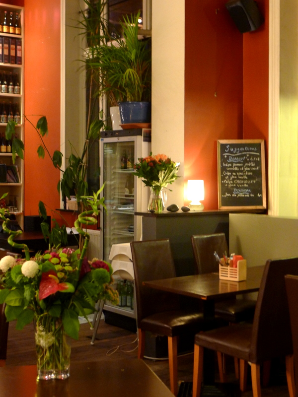 Jeudi, déjeuner avec Sophie au Vespa Café; plus tard, petite séance lecture aux Gens Que J’Aime et dîner au Triskell avec Chouchou, Marie-Aude, Mareike et Sun Jae, amie des deux précédentes et lectrice de mon blog que je rencontrais pour la première fois. Elle m’avait apporté une petite bouteille de vodka à la framboise maison, et outre le fait que j’adore les deux (vodka et framboise), cette petite attention m’a fait super plaisir. Je ne parlerai même pas de la demi-crêpe aux pommes caramélisées avec du beurre salé que j’ai mangée en dessert: c’était une tuerie galactique. Maigrir serait quand même beaucoup plus simple si on ne trouvait pas tant de trucs délicieux à manger!