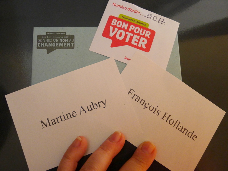 J’ai raté le premier tour des primaires socialistes parce que j’étais à Bruxelles le dimanche 9 octobre. Aujourd’hui, non seulement j’étais à Monpatelin, mais le vote était organisé dans l’école primaire qui jouxte ma résidence. Je n’avais donc aucune excuse pour ne pas aller glisser mon bulletin dans l’urne. Aucune excuse à part, peut-être, le fait que je ne savais pas pour qui voter. D’un côté, un candidat qui me sort par les trous de nez qui n’a à mon avis pas l’envergure d’un chef d’état; de l’autre, une candidate un peu trop libérale à mon goût. Pas facile de se décider.