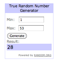 Cette fois, comme il n’y avait sur mon billet originel que très peu de commentaires qui n’étaient pas des participations, j’ai décidé de faire un tirage au sort direct, quitte à recommencer si ça tombait sur une simple réponse à un commentaire précédent. La gagnante est donc Bella Donna qui a laissé le commentaire n°28. Miss, tu m’envoies tes coordonnées postales par mail? (adresse dans la colonne de droite) Les autres, merci pour votre participation et à très bientôt pour d’autres concours!