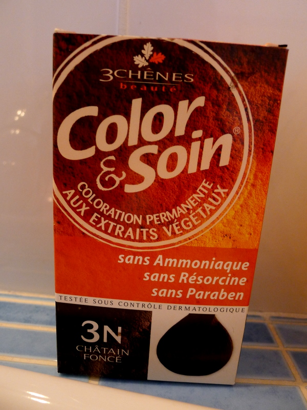 Mais il y a six mois, lors d’un séjour chez mes parents et alors que j’allais leur chercher des remèdes à la pharmacie la plus proche, j’ai repéré une promo « 2 pour le prix d’1 » sur une marque que je ne connaissais pas: Color Soin. Je me suis renseignée auprès de la pharmacienne, qui n’a pas tari d’éloges sur le côté naturel du produit. Une colo sans ammoniaque, pour moins de 10€ les deux boîtes? Je n’avais pas grand-chose à perdre en testant. Parmi les 26 teintes disponibles, j’ai choisi la 3N, « Châtain foncé », la plus proche de ma couleur naturelle. Je viens d’utiliser la seconde boîte, et je suis totalement conquise.
