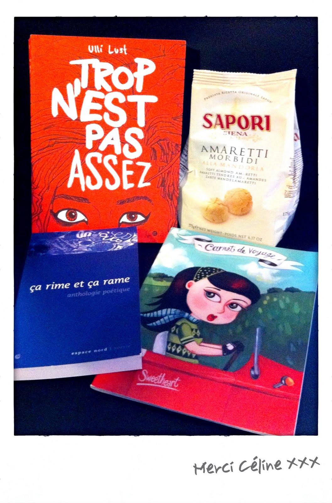 Je viens de recevoir le super paquet que Céline a préparé pour moi : j’ai été trop gâtée ! Et ses choix sont absolument parfaits !