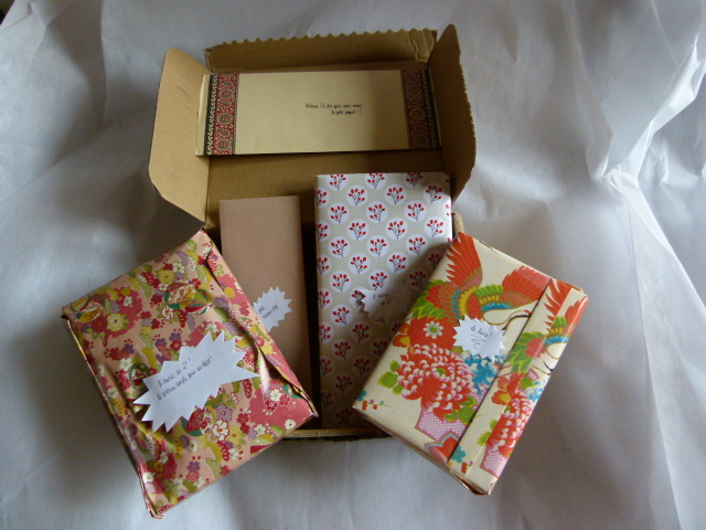 – Le paquet envoyé par Cécile de Brest à Sylvie. (Ni Sylvie ni moi ne sommes parvenues à trouver le permalien de son post, donc je linke juste sa page d’accueil.)