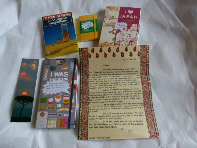 La note sur TOUT ce que j'ai reçu (et du coup, j'ai honte de ce que j'ai envoyé…) se trouve ici http://carnetsdevoyage.blogs-de-voyage.fr/archive/2011/12/04/swap-litteraire-le-colis-que-j-ai-recu.html